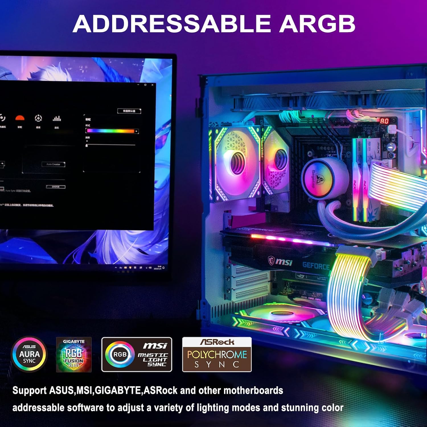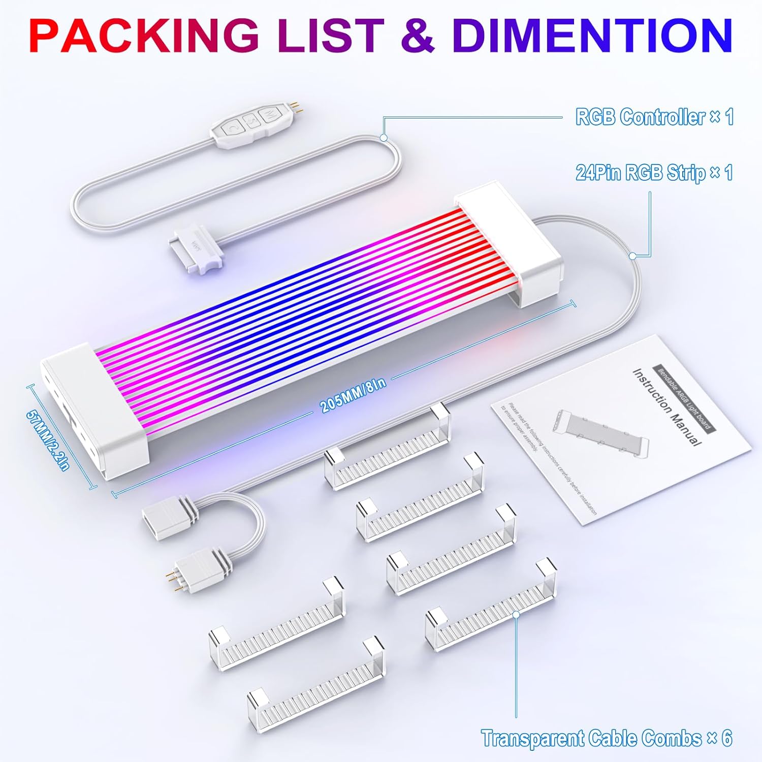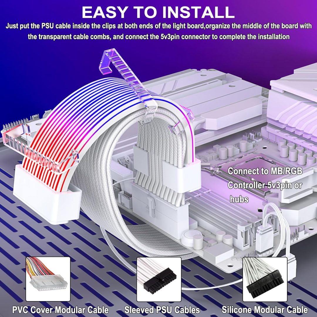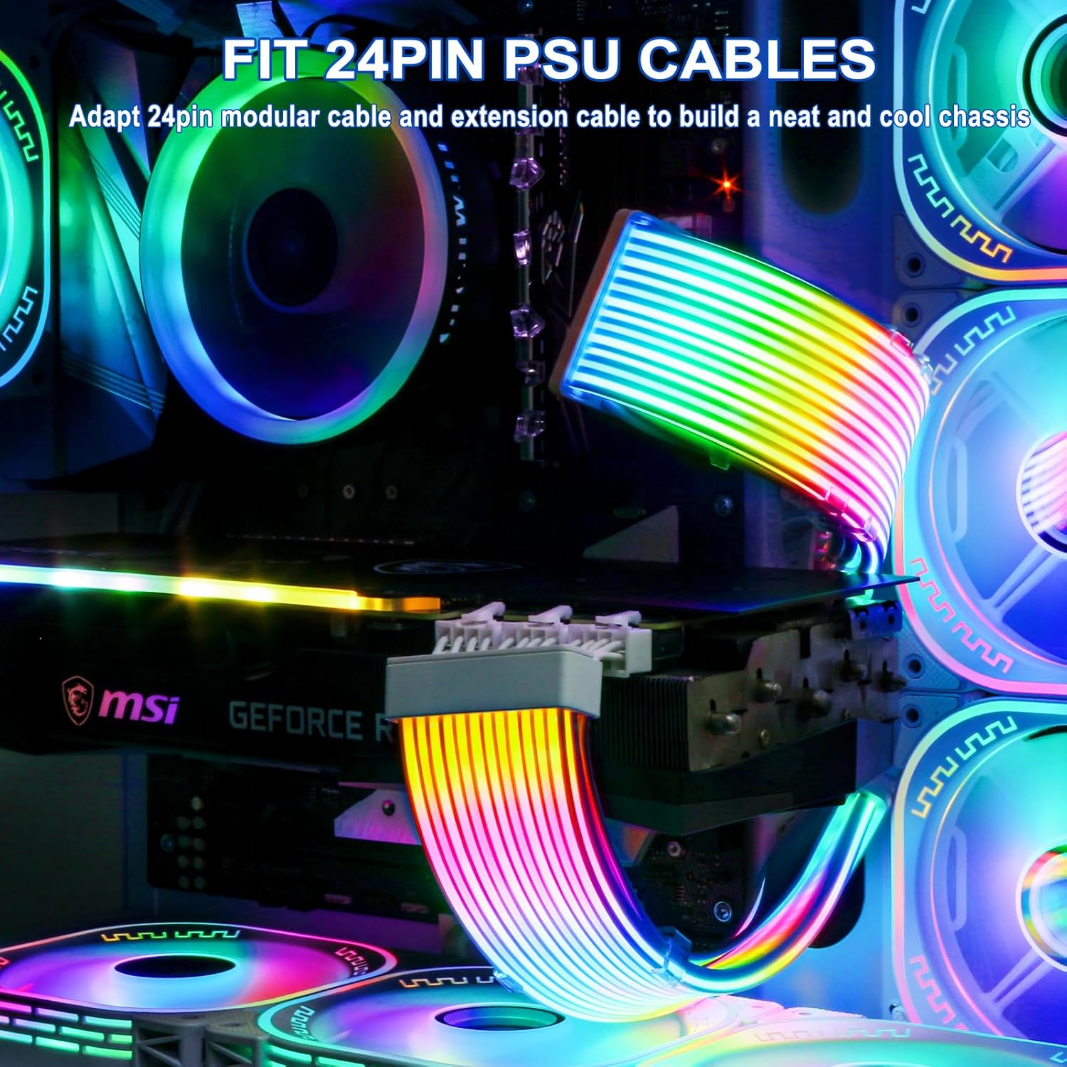 sirlyr rgb psu cables led strips argb pc cable cover compatible 24 pin motherboard extension cable power supply cables 3pin sync for computer setup 8inمشاهده محصول در آمازون