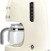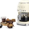 Smeg DCF02CREU. طراحی بدنه: میز کار، نوع محصول: قهوه ساز فیلتر، نوع قهوه ساز: اتوماتیک، ظرفیت مخزن آب: 1.4 لیتر، نوع ورودی قهوه: قهوه آسیاب شده، سینی قهوه دم کرده: کوزه، ظرفیت فنجان: 10 فنجان. قدرت: 1050 وات رنگ محصول: کرم، فولاد ضد زنگ ابعاد و وزن