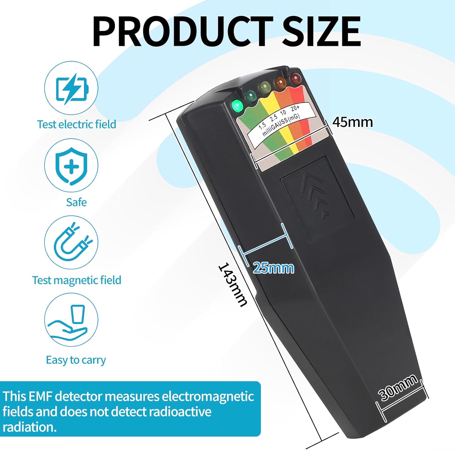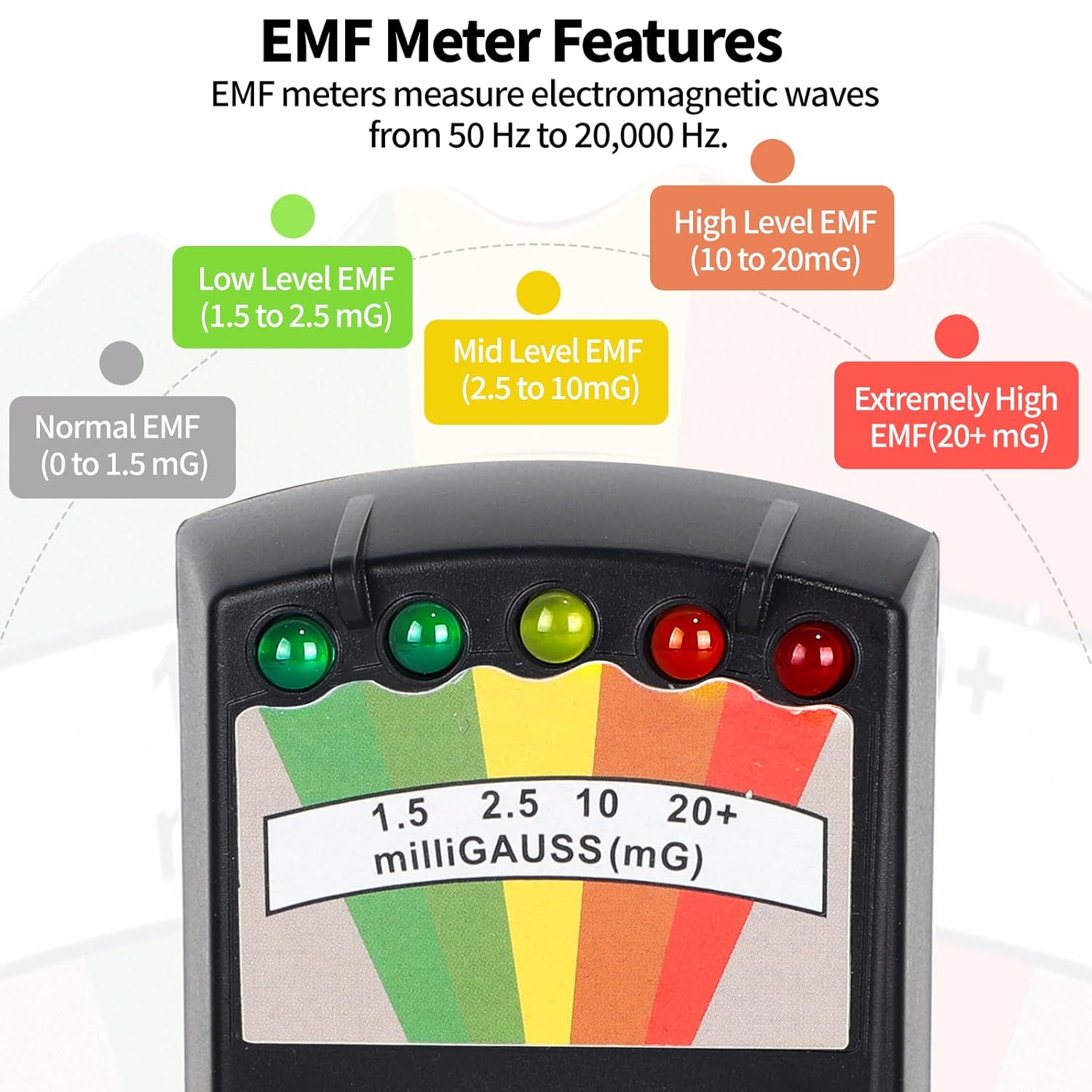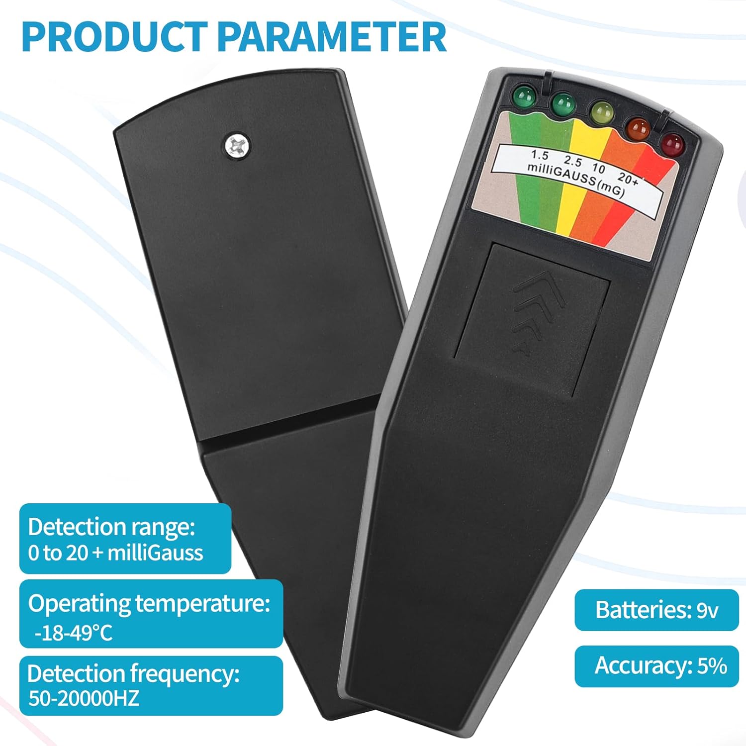 تجهیزات EMF EMF برای شکار شبح ماوراء الطبیعه کنتور میدان الکترومغناطیسی به طور گسترده ای برای ارزیابی تابش الکترومغناطیسی استفاده می شود. فناوری مدرن شامل خطراتی مانند تابش الکترومغناطیسی از اجاق های مایکروویو ، تلفن های همراه ، تلویزیون ، تهویه هوا و رایانه ها است. این تابش می تواند باعث سرگیجه ، تپش قلب ، ظلم قفسه سینه ، خشکی فک ها و تضعیف دفاعی ایمنی شود. بنابراین درک و کنترل تابش الکترومغناطیسی اطراف آن مهم است. مشخصات فنی منبع تغذیه: 6F22 9 ولت ابعاد باتری: 150x60x25 میلی متر وزن: 170 گرم میدان اندازه گیری: 0-20+میلی گرم دقت: 5 ٪ فرکانس اندازه گیری: 50/60 هرتز دمای کار: -18 ° C (0 ~ 120 درجه فارنهایت) چگونه آزمایش کننده EMF چگونه کار می کند؟ 1 2 3. اگر ردیاب شکار شبح را به جلو و عقب می چرخانید ، خواندن می تواند تغییر کند. بالاترین خواندن دقیق ترین است. محتوای منبع تهیه 1 x EMF آشکارساز سیاه 1 x به زبان انگلیسی