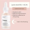 علاوهبر خاصیت لایه برداری، درصد مناسب لاکتیک اسید در سرم لاکتیک اسید ۱۰% اوردینری باعث شده است تا این محصول داری ویژگی آبرسانی و جاذبیت رطوبت برای پوست نیز باشد که این مسئله علاوهبر احساس شادابی و طروت، چروکهای سطحی پوست را نیز از بین می برد و پوست شما را جوان نگه می دارد.