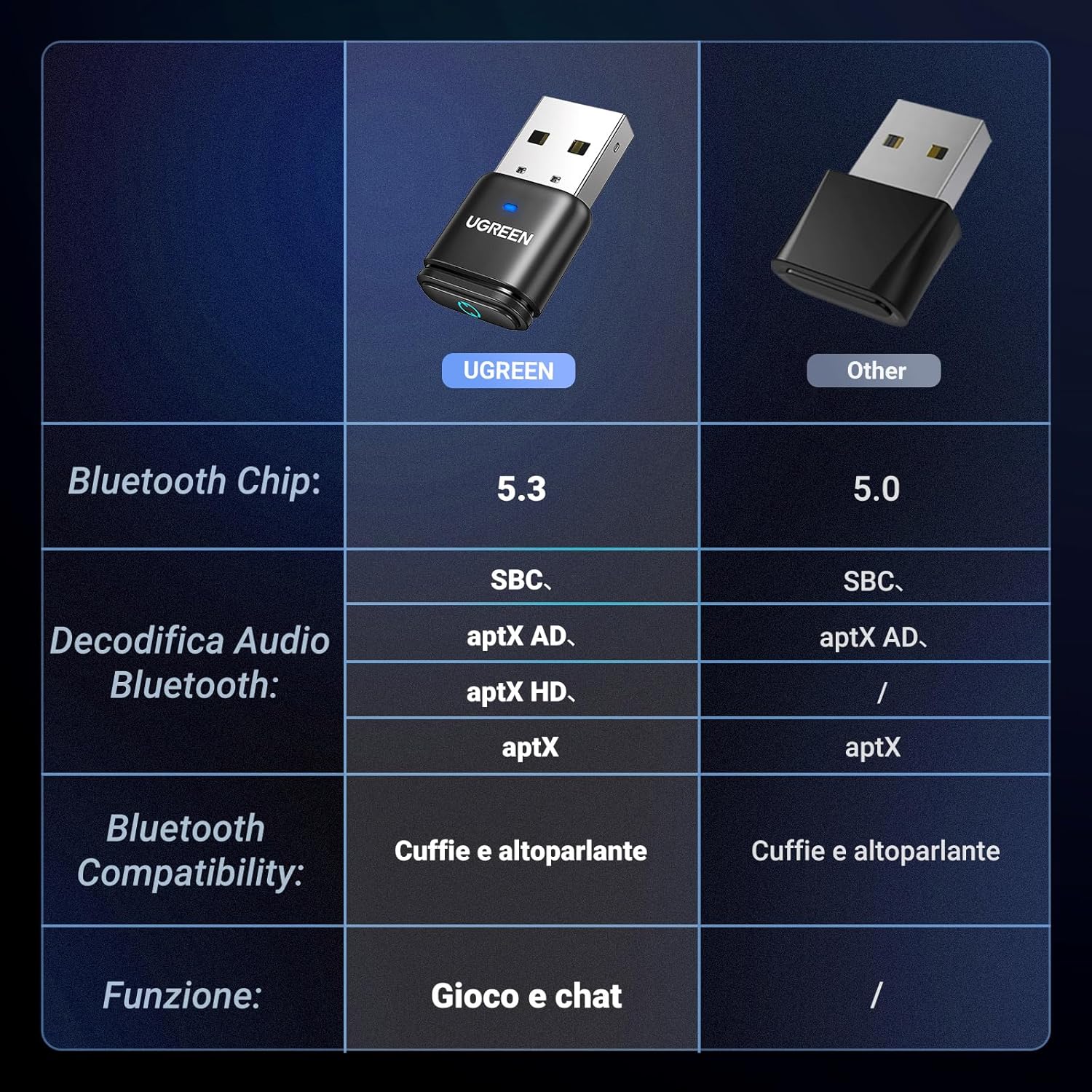 ugreen bluetooth adapter 5 3 aptx hd audio dongle for ps4 ps5 pro switch game consoles pc pc key independent microphone supports speaker headphonesمشاهده محصول در آمازون
