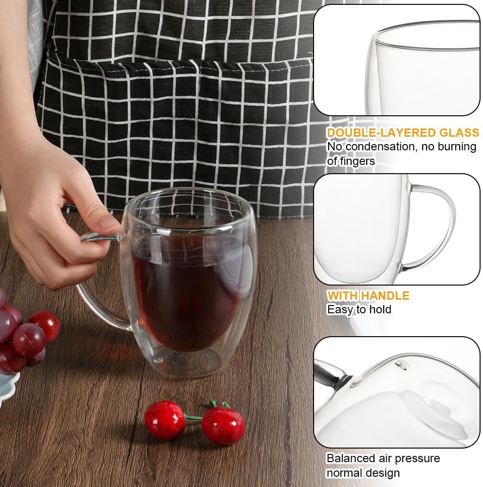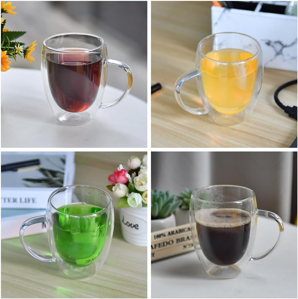 - ✅【CHIC APPEARANCE】Double wall and clear glass create a floating illusion, the drink seems to float in the glass. The glass is very light, transparent and smooth, making it easy and pleasant to use, making your drinks more attractive. Perfect for coffee, tea, desserts and more, for every table and occasion.