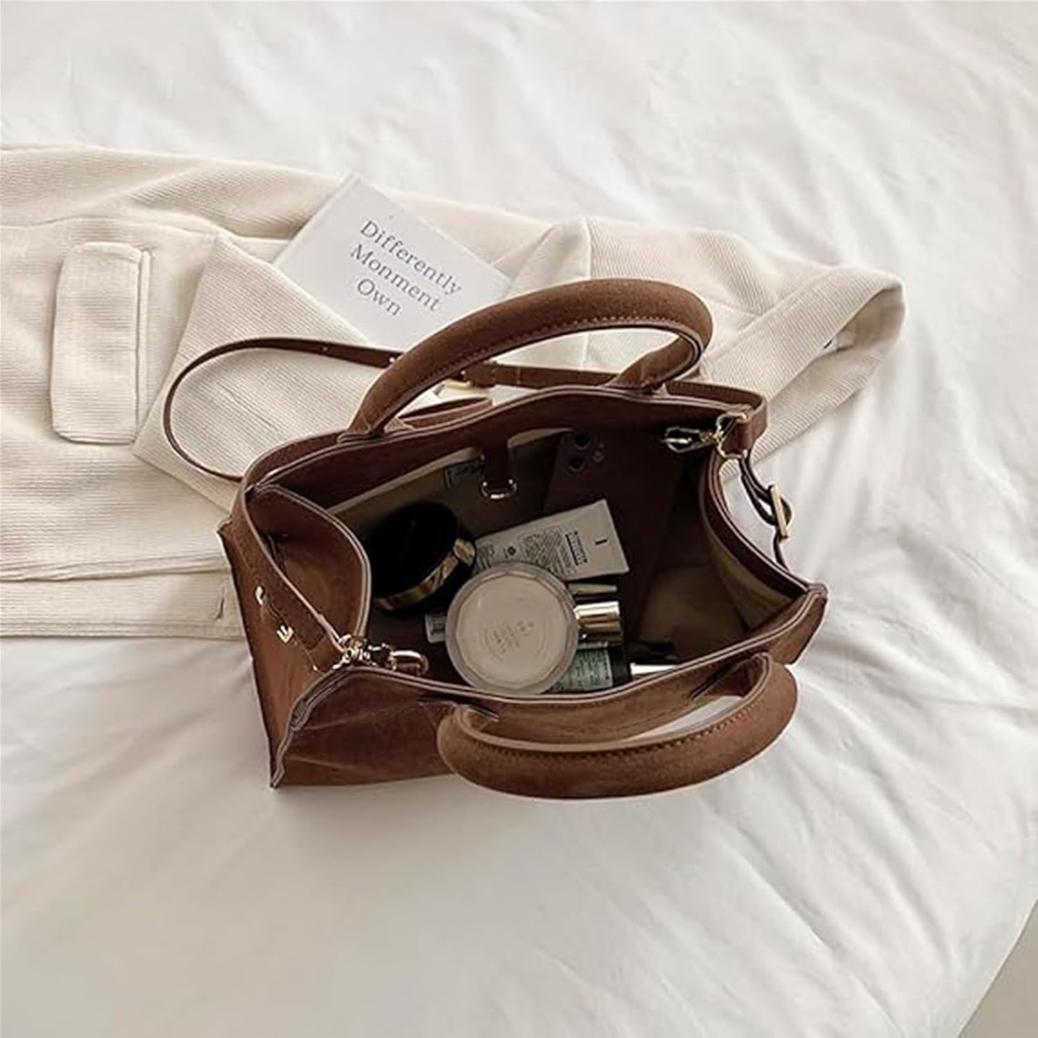 Specification: Shape: Casual Vintage Tote Bag Main Material: Suede Handbags Type: Suede Shoulder Bags Lining Material: Polyester Shoulder Stap Lew: 1220mm/48.03inch Use: Single Shoulder, Handheld, Crossbody Closing Mode: Buckle Note: Shoulder Stap is Adjustable Color: Brown, Coffee size: 380*270*220mm/14.96*10.63*8.66inch Package Includes: 1x کیف جیر جیر جیر
