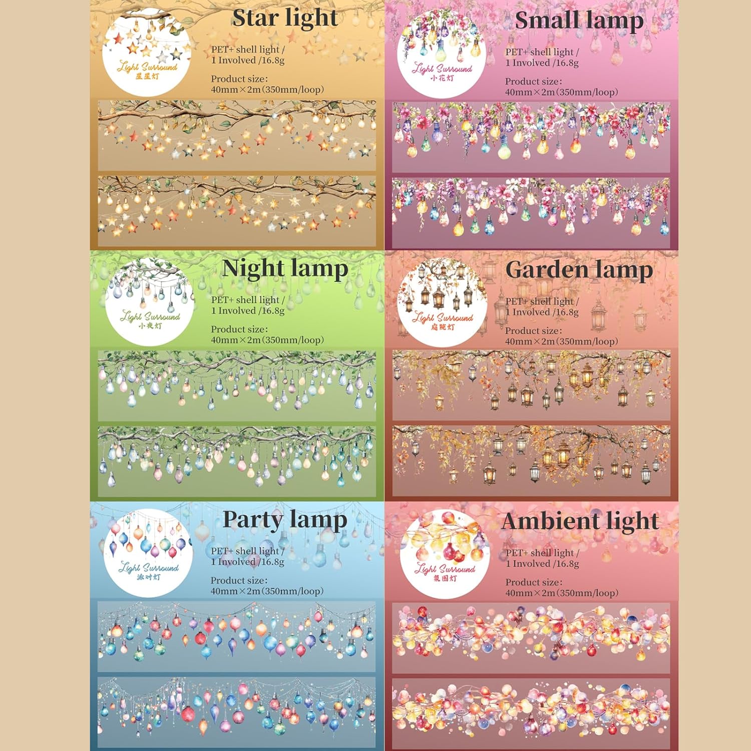 - Washi Tape Set: Lighting Theme Tape Scrapbook Stickers - Small Yard Lights, Party Den, Night Lights, etc. Total 6 theme lights stickers
