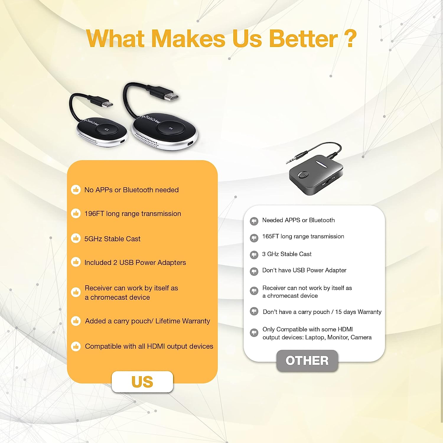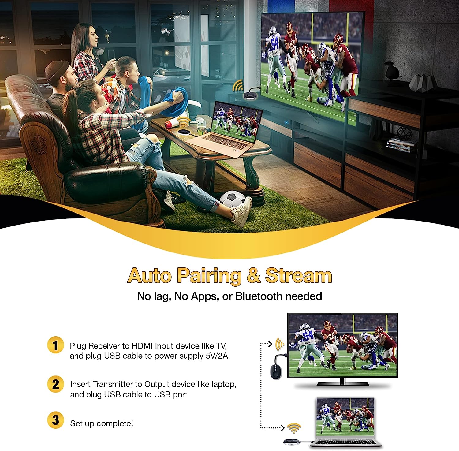 wireless hdmi transmitter and receiver 4k pacheco tech streaming media video audio file hdmi wireless extender for laptop camera cable box netflix ps5 phone to monitor projector hdtv 165ftمشاهده محصول در آمازون