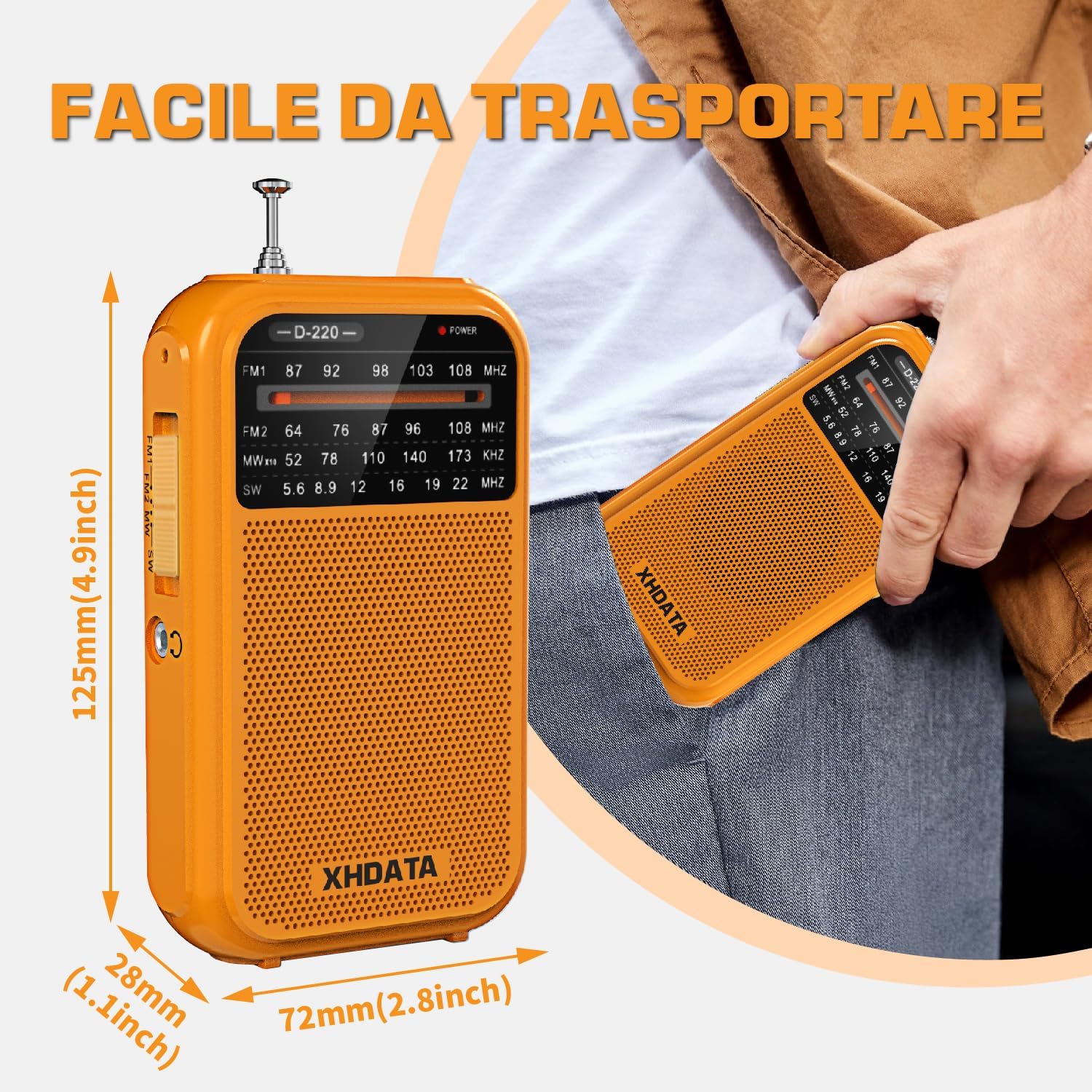 - [EASY TO CARRY] The XHDATA D220 FM AM SW portable radio is quite easy to carry. Small dimensions 125*74*30mm with a weight of only 125g (without batteries). You can hold the D220 pocket radio with one hand, and you can also put this small am/fm/sw radio in your pocket or bag to listen to your favorite radio anytime, anywhere.
