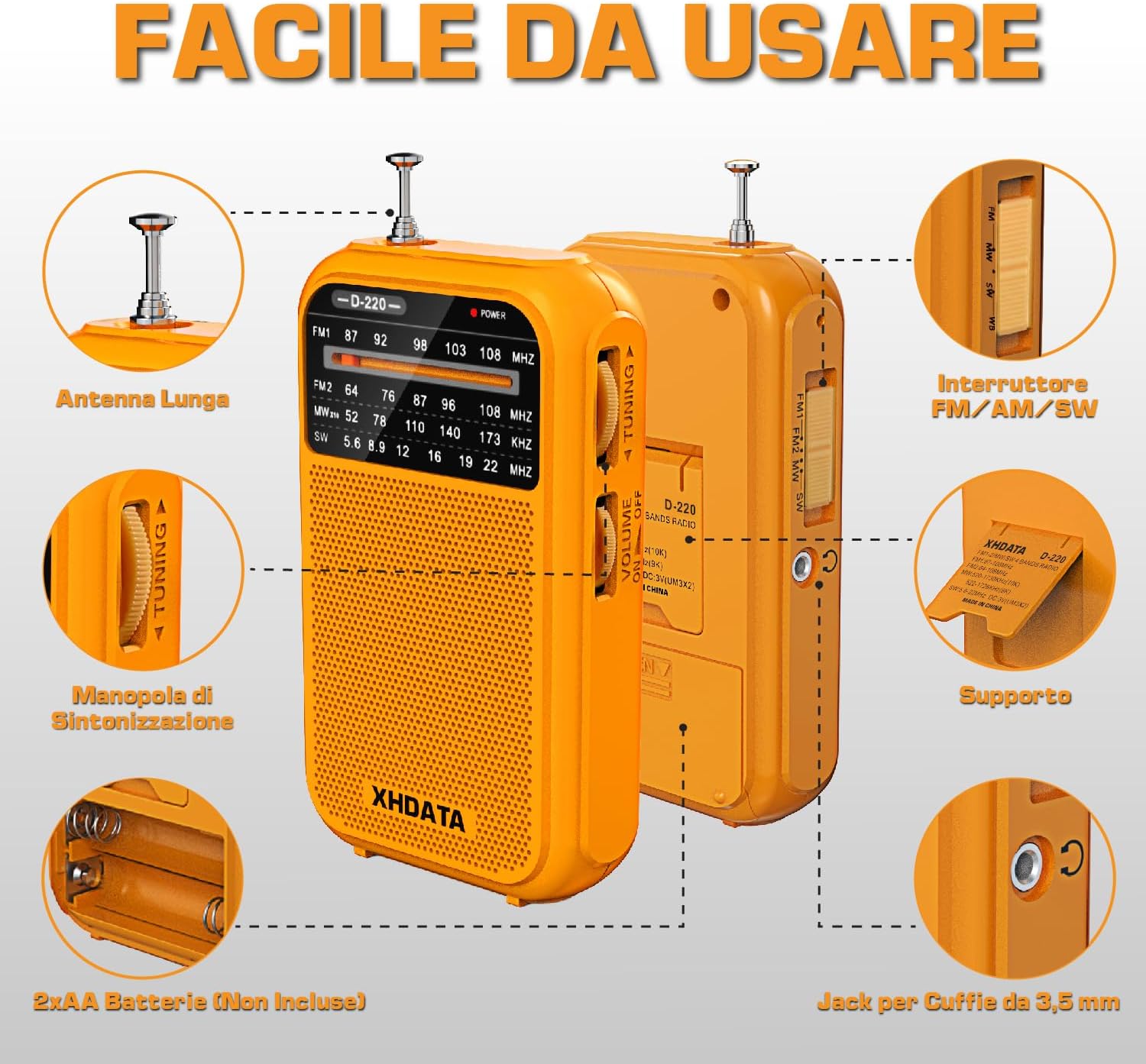 - [GOOD SOUND QUALITY] This portable am fm sw radio has a good built-in speaker for loud and clear sound. The small XHDATA D220 pocket radio is also equipped with a 3.5mm headphone jack, so you can connect headphones and immerse yourself in the world of radio and music!