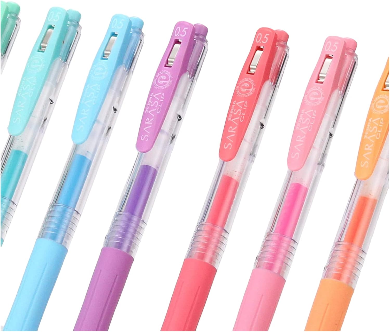 خودکار ژل Zebra Knock، گیره بادوام، 8 رنگ متنوع. آبی شیری، سبز شیری، آبی شیری، بنفش شیری، قرمز شیری، صورتی شیری، صورتی شیری، سفید شیری