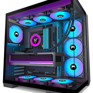 محفظه PC H1 HYXN ATX – از پیش نصب شده با 7 فن PWM ARGB – کیف گیمینگ PC Mid-Tower Dual Cavity – با Type-C – می تواند تا 3X هیت سینک 360 میلی متری را به طور همزمان نگه دارد (مشکی، H1) H1 مشکی