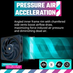 Cooler Master Mobius 120 OC Case Fan – طرح تیغه حلقه ای (PWM)، لرزشگیر، بلبرینگ، توپی موتور فلزی (حداکثر 88.1CFM، 4.75mmH2O، 39.3dBA) – آبی تیره و مشکی 120mm مشکی