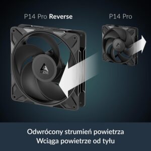 ARCTIC P14 Pro Reverse – 3 Pack – 140 mm Premium Reverse Fan Airflow, Fans PWM with Y-Cable Splitter, 400-2650 rpm, 0 rpm <5% PWM, Hydrodynamic Bearing, 4-Pin – Black P14 Pro Reverse (3 Stück)