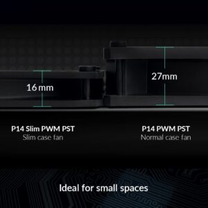 ARCTIC P14 Slim PWM PST – فن رایانه شخصی، فن کیس 140 میلیمتری، با فناوری اشتراکگذاری PWM (PST)، بهینهسازی فشار، موتور بیصدا، رایانه، بسیار باریک، 150–1800 دور در دقیقه – مشکی