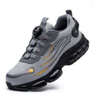 کفش ایمنی مردانه زنانه سبک وزن کفش کتانی تنفسی ضد لغزش کفش ایمنی با پنجه فولادی تنظیم سریع توری 36-46 EU 42 EU Grey 266