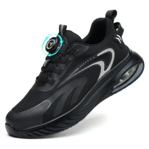 کفش ایمنی مردانه زنانه کفش کار سبک وزن کفش ایمنی راحت تنفس با بند سگک چرخان تنظیم سریع 42 EU مشکی