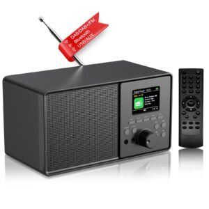 رادیو Vintage DAB+/FM با بلوتوث 5.0، رادیو ساعت زنگ دار دیجیتال DAB Plus، کنترل از راه دور، پورت USB/AUX، 30 ایستگاه از پیش تعیین شده – ایده آل برای آشپزخانه/اتاق خواب، هدیه با کیفیت مشکی