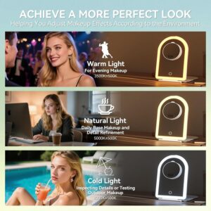 آینه آرایش با چراغ های LED قابل شارژ، آینه تاشو قابل حمل با بزرگنمایی 10 برابر، روشنایی قابل تنظیم 3 رنگ، سوئیچ های لمسی و عملکرد حافظه، برای مسافرت و خانه، سفید