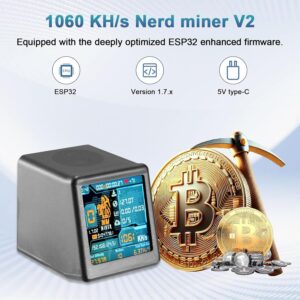 Nerdminer V2 Bitcoin Miner Binghe 1060 KH/s Nerd Miner V2 نمایشگر هوشمند با ESP32 و ساعت رومیزی بیت کوین ماینر BTC Solo Lottery Miner Bitcoin Crypto Lottery Miner با Nerd Miner v2 (مشکی)
